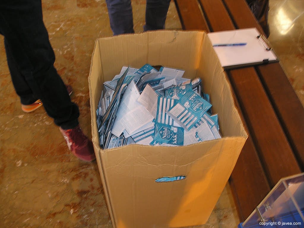 08 de enero de 2016 - 16:0310.000 papeletas han entrado en el sorteo. Foto Anterior2 de 6Foto SiguienteVer el artículo original: Isabel Bolufer fue la ganadora del vale de 500€ de la Asociación de Comerciantes del Centro Histórico Llamada a una afortunada Papeletas del sorteo del Centro Histórica Xàbia Extrayendo una papeleta Llamada a una premiada Mano inocente extrayendo papeletas Sorteo de Xàbia Histórica en el Mercat Municipal