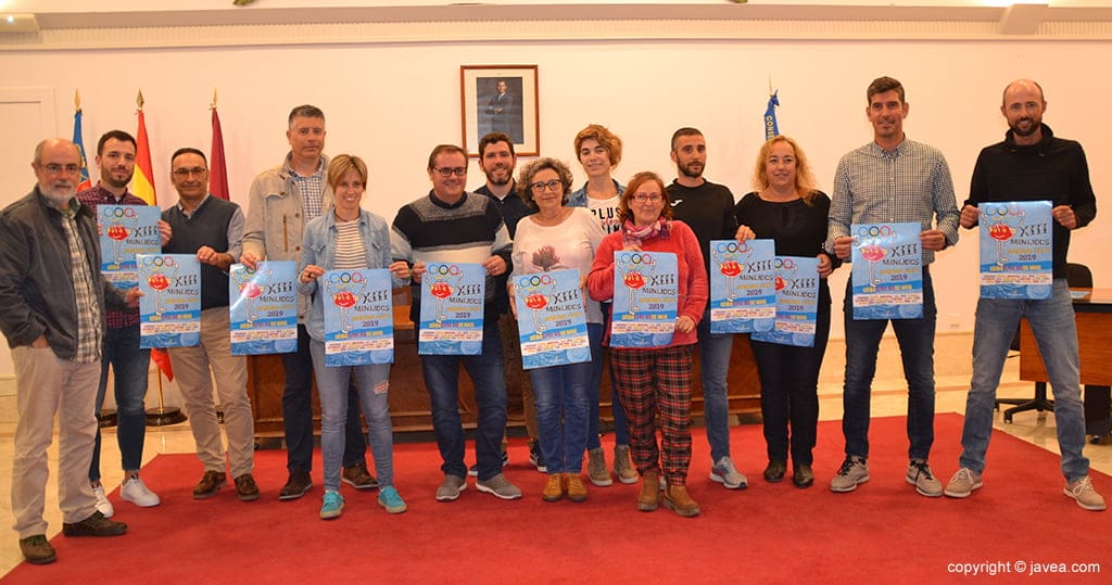 El salón de actos del Ayuntamiento de Dénia fue el escenario de presentación de los ‘XIII Minijocs Marina Alta’. Un acto que reunió a algunos alcaldes, ediles y técnicos de deportes de las poblaciones participantes en este gran evento deportivo que tendrá lugar los días 17, 18 y 19 de mayo.