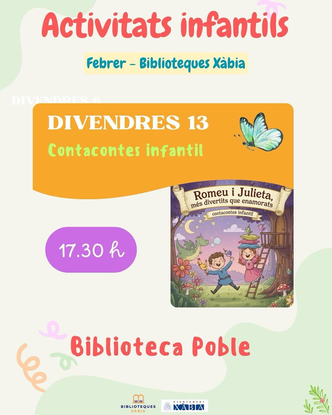 12 de febrero de 2026 - 10:29 1 de 2Foto SiguienteVer el artículo original: La Biblioteca del Centro Histórico de Xàbia acoge un romántico cuentacuentos infantil Cuentacuentos infantil ‘Romeu i Julieta’ Cuentacuentos infantil ‘Romeu i Julieta’