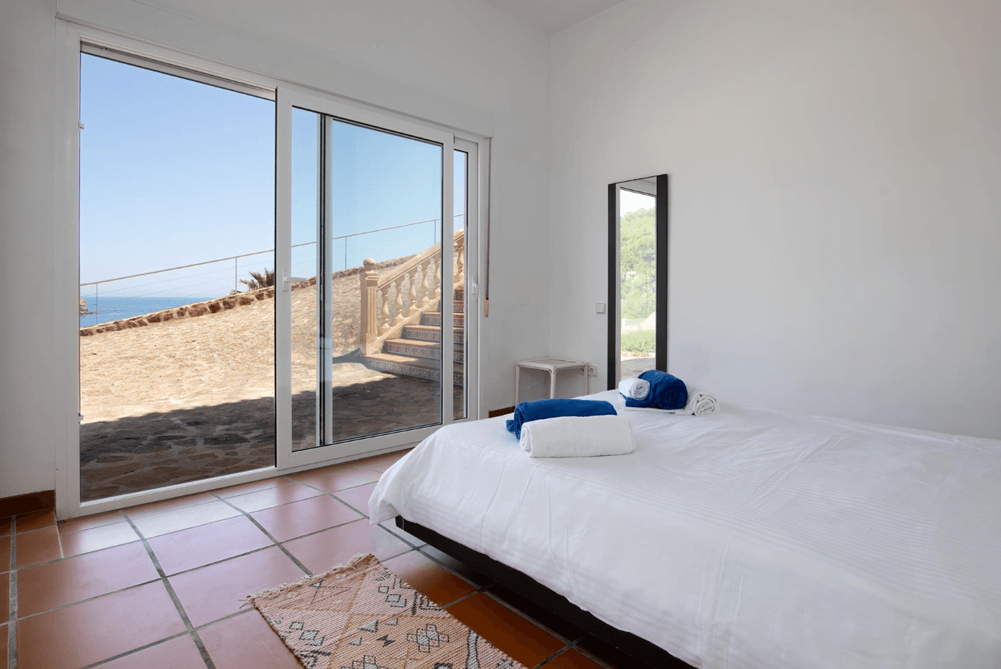 15 de septiembre de 2022 - 14:24Dormitorio con vistas al mar Foto Anterior4 de 18Foto SiguienteVer el artículo original: La espectacular villa vacacional junto a la playa de La Barraca perfecta para 10 personas Amplio baño equipado con bañera Baño con dos lavabos y bañera Baño equipado con ducha y mampara de cristal Dormitorio con acceso al exterior y vistas al mar Dormitorio doble con armario empotrado Dormitorio doble con cama de matrimonio Dormitorio doble con cama de matrimonio y aire acondicionado Dormitorio doble con dos camas individuales Piscina de la vivienda con tumbonas para tomar el sol Playa de la Barraca junto a la vivienda Vista aérea de la villa con piscina Vista aérea de la vivienda junto a la playa de la Barraca Zona de la piscina infinita con vistas a la playa de La Barraca Cocina con rincón de comedor Cocina totalmente equipada Dormitorio doble con vistas al mar Salón con chimenea y acceso a la terraza Salón de la villa vacacional