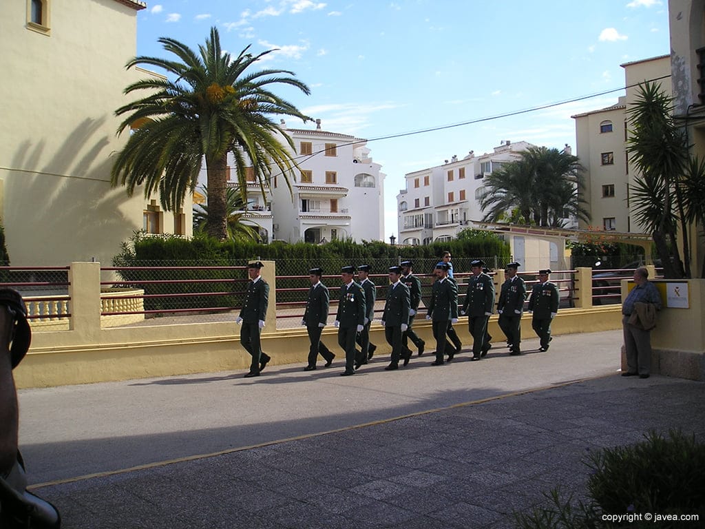 12 de octubre de 2015 - 20:41Pequeño desfile delante de la Casa Cuartel. Foto Anterior7 de 16Foto SiguienteVer el artículo original: La Guardia Civil de Xàbia celebró la festividad de su patrona la virgen del Pilar Guardias civiles de la Casa Cuartel de Xàbia Izada de la bandera de España Comienzo del actos a los caídos Acto previo a la izada de bandera Autoridades civiles y militares en la misa Dos guardias civiles con la corona Desfile de la G. Civil Disparo de las salves de honor Sacerdotes celebrando la misa Cargando armas Representación municipal Bandera de España en el mastil Formación de la Guardia Civil Momento de la Misa de Campaña Ofrenda de la corona a los caídos Público asistente a la misa
