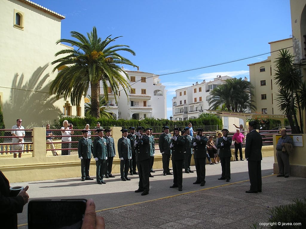12 de octubre de 2015 - 20:44Momento de cargar las armas para disparar las salves de honor. Foto Anterior10 de 16Foto SiguienteVer el artículo original: La Guardia Civil de Xàbia celebró la festividad de su patrona la virgen del Pilar Guardias civiles de la Casa Cuartel de Xàbia Izada de la bandera de España Comienzo del actos a los caídos Acto previo a la izada de bandera Autoridades civiles y militares en la misa Dos guardias civiles con la corona Desfile de la G. Civil Disparo de las salves de honor Sacerdotes celebrando la misa Cargando armas Representación municipal Bandera de España en el mastil Formación de la Guardia Civil Momento de la Misa de Campaña Ofrenda de la corona a los caídos Público asistente a la misa