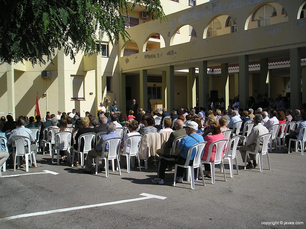 12 de octubre de 2015 - 20:51Mucho público en la misa de campaña celebrada en la casa cuartel de la G. Civil de Xàbia. Foto Anterior16 de 16Ver el artículo original: La Guardia Civil de Xàbia celebró la festividad de su patrona la virgen del Pilar Guardias civiles de la Casa Cuartel de Xàbia Izada de la bandera de España Comienzo del actos a los caídos Acto previo a la izada de bandera Autoridades civiles y militares en la misa Dos guardias civiles con la corona Desfile de la G. Civil Disparo de las salves de honor Sacerdotes celebrando la misa Cargando armas Representación municipal Bandera de España en el mastil Formación de la Guardia Civil Momento de la Misa de Campaña Ofrenda de la corona a los caídos Público asistente a la misa