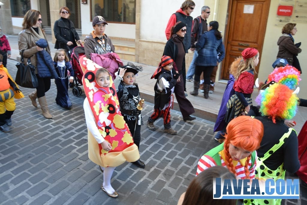 Más de doscientos niños y niñas, y también muchos papás y mamás, participaron el sábado por la tarde en la fiesta de Carnaval organizada en las calles de Xàbia.