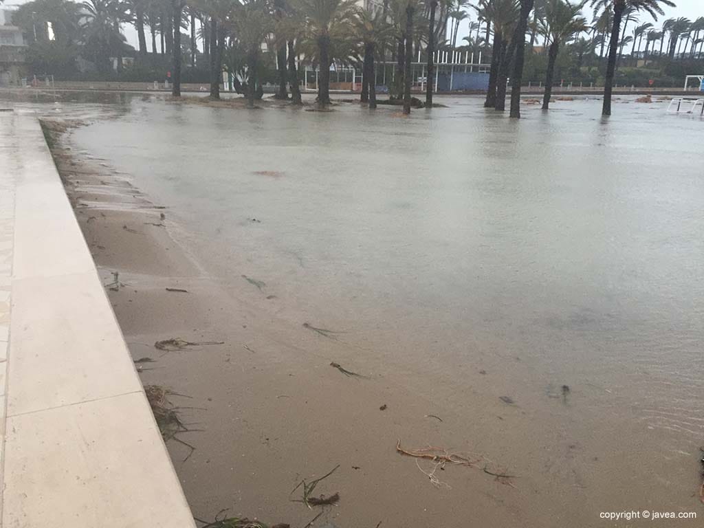 La playa quedó inundada por el fuerte oleaje
