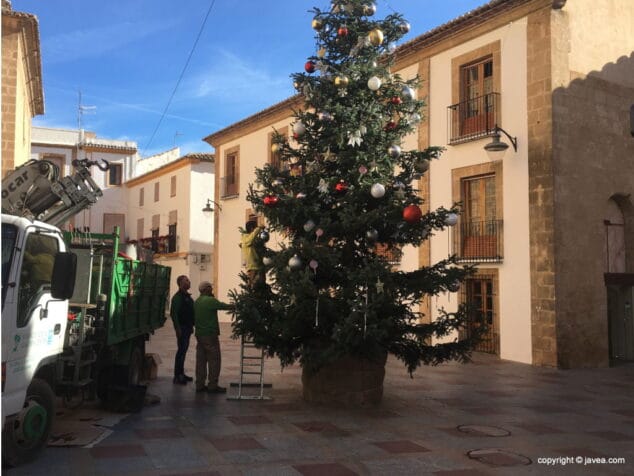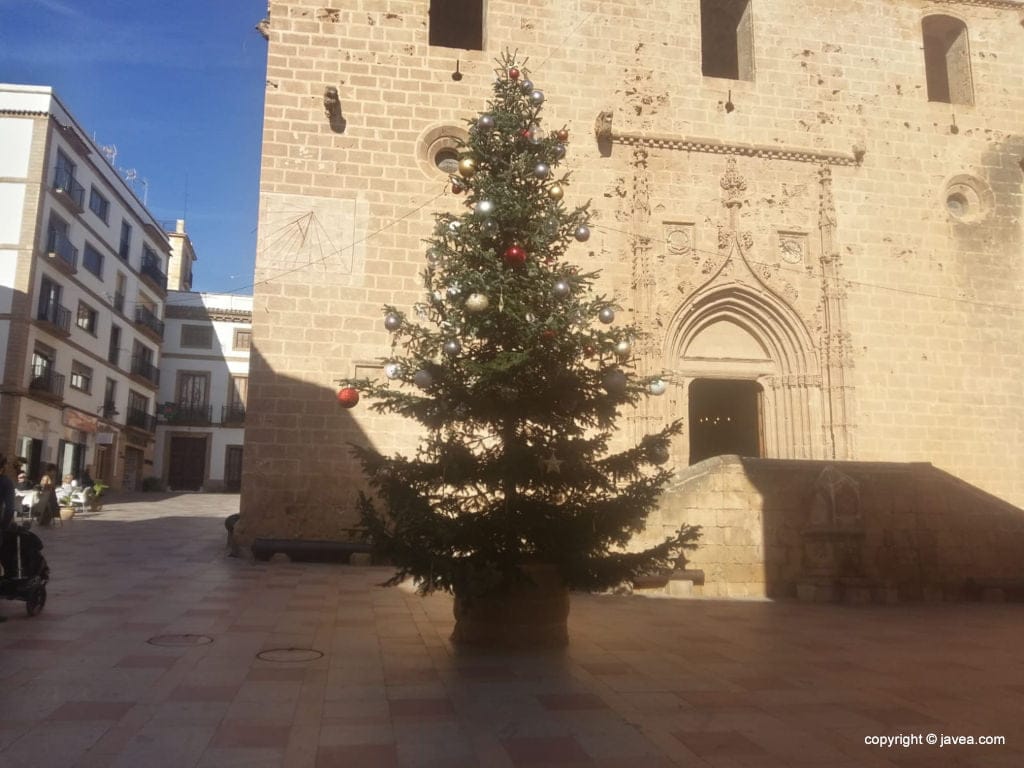 En Xàbia, el Árbol de Navidad ya preside la plaza de la Iglesia, frente al Ayuntamiento, siendo objeto de observación de cada vecino y turista que pasea por el centro histórico de Xàbia.