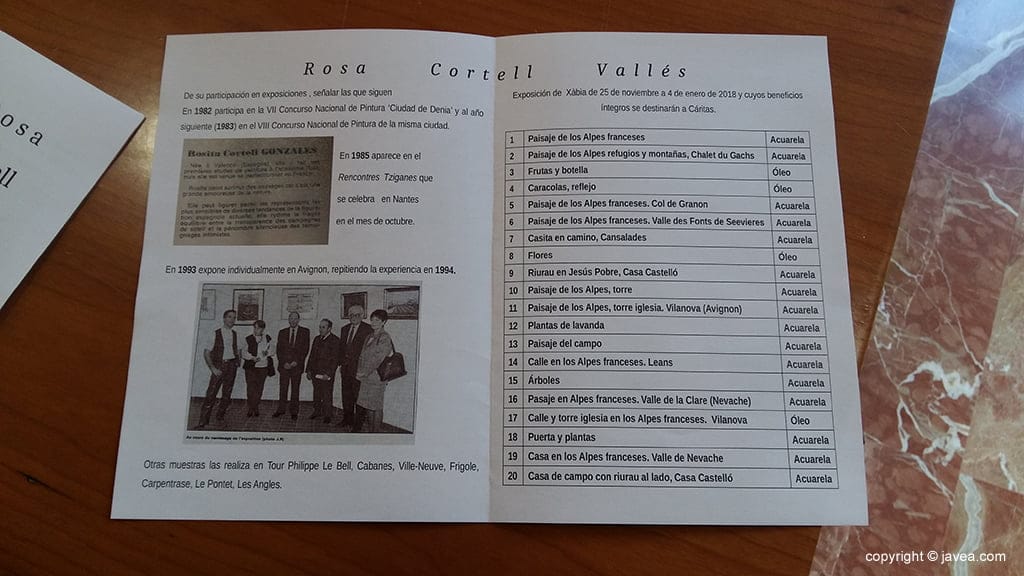 Tras su larga vida, ya que en la actualidad tiene 91 años, esta pintora ha donado, prácticamente la totalidad de sus obras a Cáritas (20 cuadros) para que los vendan y recauden fondos para su trabajo social. La pintora xabiera cuenta «el tiempo que Dios me ha dado para vivir no es mío, como es tiempo que me han dado, doy ahora esta colección de cuadros». La exposición se inaugurará este sábado 25 de noviembre en Ca Lambert a las 19 horas y estará abierta hasta el 4 de enero. También ha regalado cuatro lienzos al Ayuntamiento, que pasarán a formar parte de sus fondos patrimoniales.