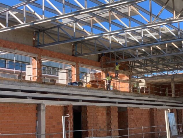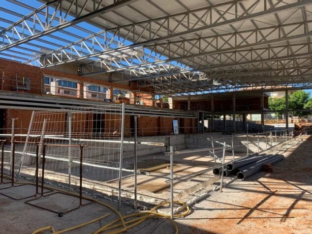 Las instalaciones van tomando forma, «y a final de esta semana la cubierta estará ya finalizada», ha reseñado el director de obra. En el interior, la gran parte de la edificación está terminada, ahora queda revestir los tabiques e iniciar el trabajo de alicatado, lo que dará una nueva imagen a la estructura.