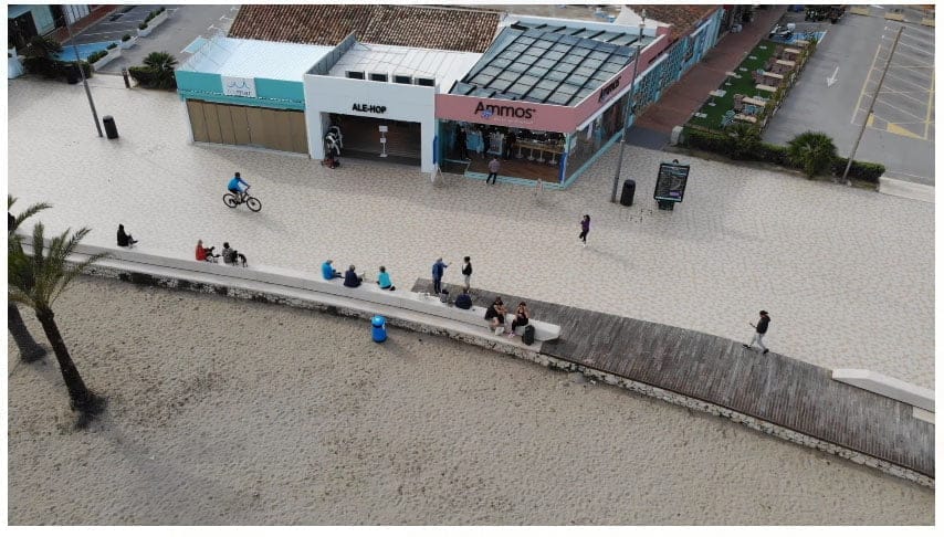 03 de febrero de 2021 - 15:42 Foto Anterior2 de 2Ver el artículo original: La Policía Local de Xàbia incorpora el uso de drones en los dispositivos de vigilancia Agente de Policía manejando el dron Imagen del Paseo del Arenal tomada con el dron