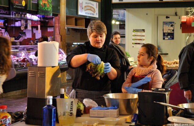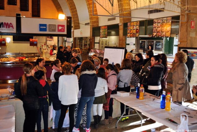 Con el menú claro, los representantes de Los Remos La Nao explicaron las claves para comprar con sentido, sin malgastar el dinero y seleccionando los mejores productos locales. Así, cada grupo recorrió el Mercat conociendo lo mejor de cada puesto y repartiéndose las tareas. En cada equipo, unos fueron los encargados de administrar el dinero, otros de seleccionar los productos y otros de adquirirlos.