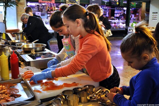 Ayer sábado, el Mercat Municipal de Jávea se convirtió en una improvisada cocina de alto nivel que acogió la primera jornada de MercatChef Junior, una iniciativa de la concejalía de Fomento Económico y el propio Mercat que busca que los más pequeños tengan su primer contacto con la cocina, conozcan los productos locales y aprendan a gestionar y administrar la compra de alimentos.