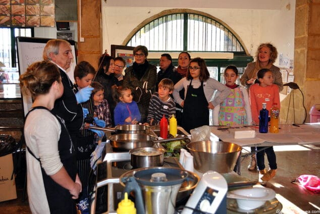 En la parte central del recinto se dispuso la gran cocina de MercatChef Junior y, bajo la atenta mirada de padres, restauradores locales y curiosos, cada uno de los grupos fue confeccionando el menú propuesto siguiendo las indicaciones de Tomás Franco que animó a participar de manera activa a cada uno de los pequeños. El cocinero mostró las técnicas y los mejores trucos para cocinar correctamente el pato o incluso cortar finamente y con facilidad y un filete de salmón.