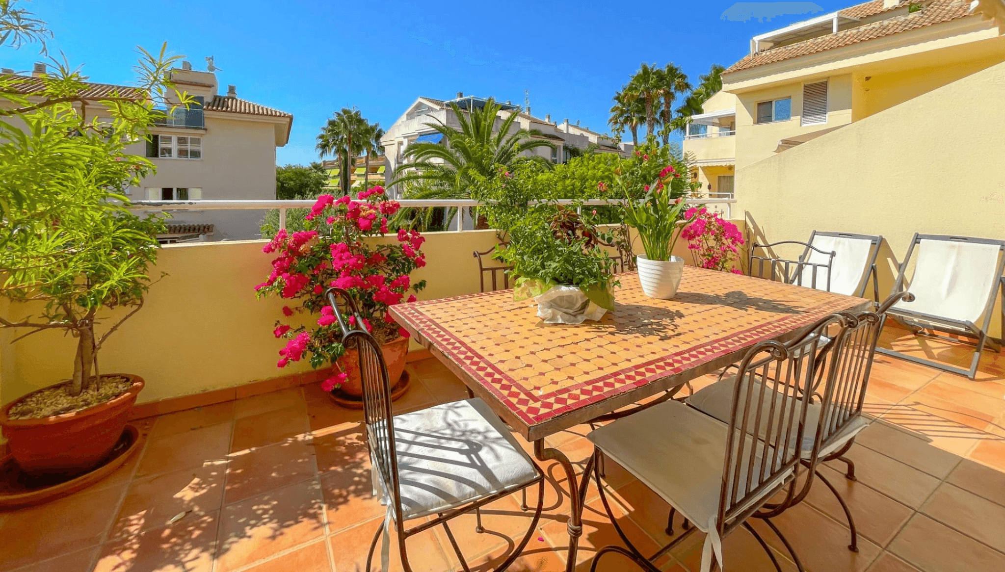 La terraza soleada con orientación sur es el lugar perfecto para disfrutar del cálido sol mediterráneo y vistas panorámicas
