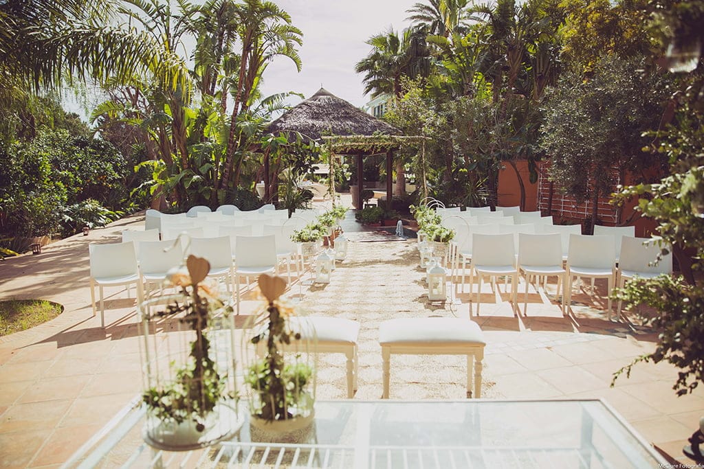 Cuentan con la posibilidad de la realización de un menú diferente que se adapte a tus gustos y necesidades. Tu comida o cena será muy especial y sorprenderá a todos tus invitados. Además, no te puedes perder su encantadora decoración mediterránea para ceremonias, en un entorno muy íntimo, rodeado de naranjos y naturaleza.