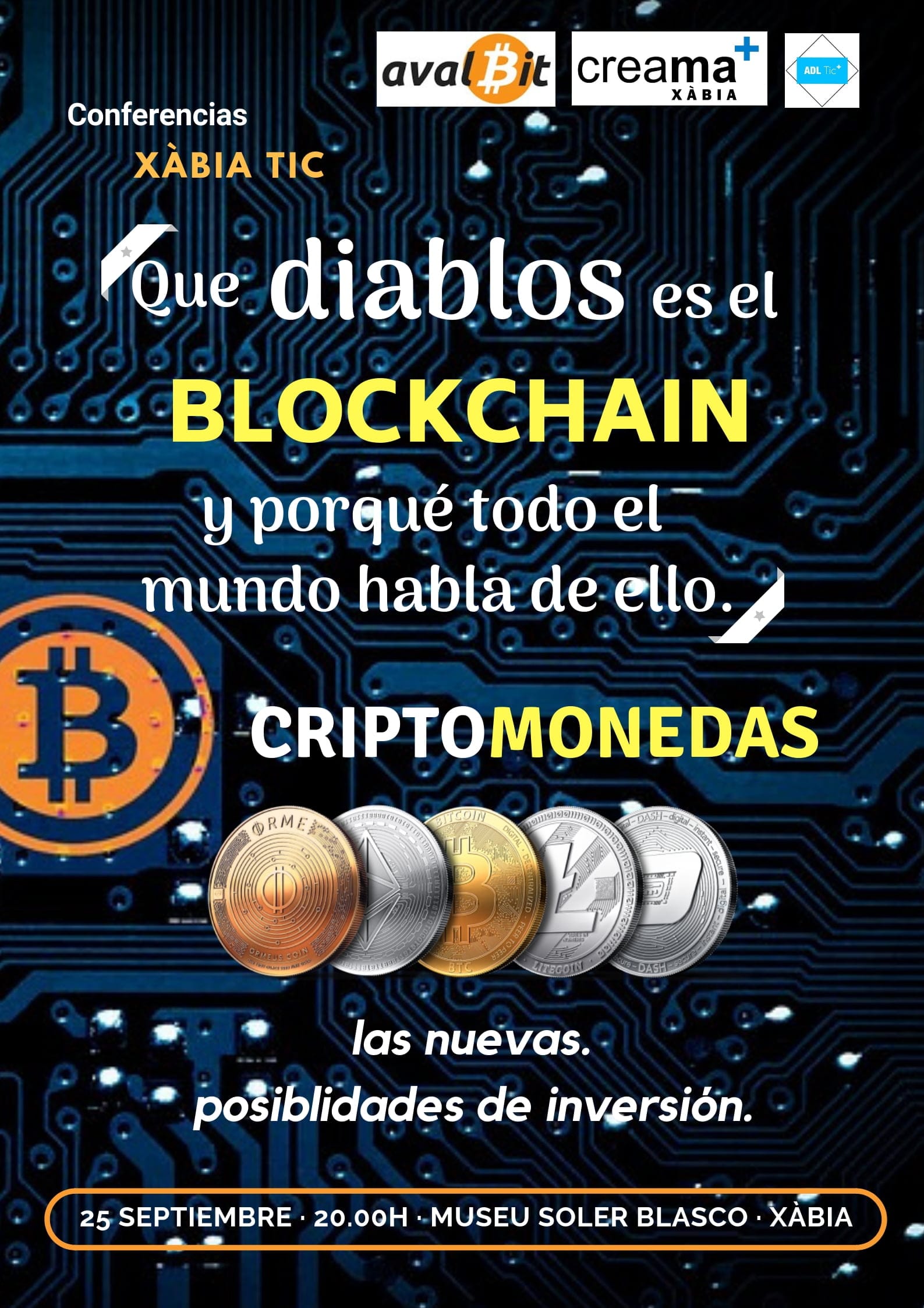 Desde la organización de Xàbia TIC señalan que Internet ya lo ha cambiado todo «pero seguimos sin fiarnos los unos de los otros y hasta ahora hemos necesitado de intermediarios (llámalo banco, paypal…). El Blockchain elimina estos intermediarios con su cadena de bloques y las criptomonedas son uno de sus frutos. En 2017, la industria