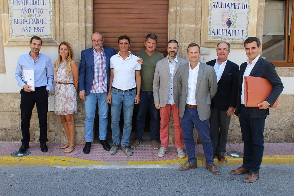 El alcalde del Poble Nou de Benitatxell, Josep Femenía, la concejala de Educación, Myra Van‘t Hoff, el concejal de Residentes, Dirk Rheindorf, junto con Damián Quinn, director de Expansión para Europa de ISP Londres, Pedro Soliveres, en representación de la VAPF y los arquitectos del centro Antonio y Toncho Arrechea se reunieron para realizar un convenio en el que Ayuntamiento reivindicó la contratación de personal y empresas de la localidad.