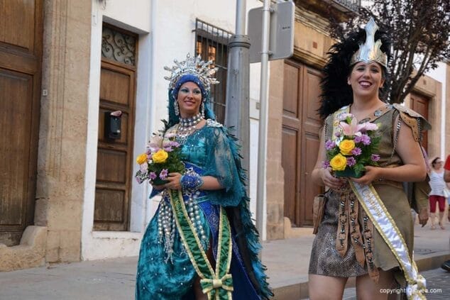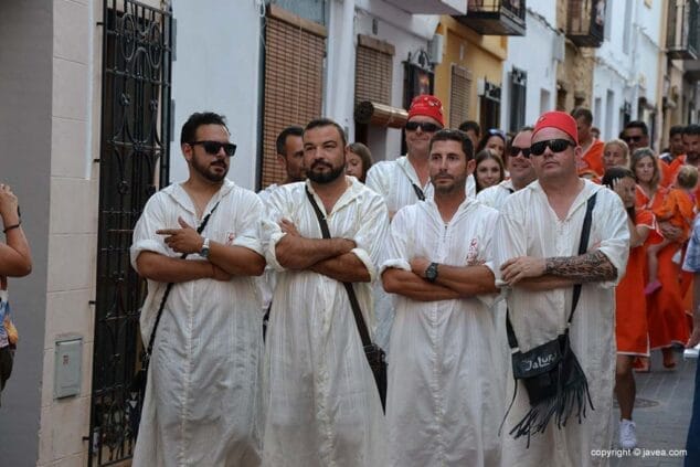 Las filaes xabieras y sus estandartes recorrieron, al ritmo de marchas moras y cristianas y del pasodoble Xàbia, las calles Príncipe de Asturias, Placeta del Convent, Colón, Virgen de la Merced y Foguerer hasta la calle San Jaime (ahora del Ravalet) donde, desde hace años, la gran familia festera ofrenda a su patrón. Las Abanderadas Mora y Cristiana, Lorena Ros y Laura Torres y el Capitán de la Filà Almoradins, Emilio Bañuls, depositaron sus flores al santo.