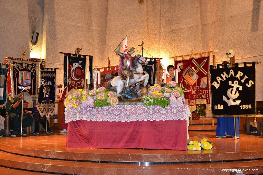 Ver el artículo original: Las filaes de Moros i Cristians de Xàbia ofrendan a San Jaime en la Parroquia del Loreto