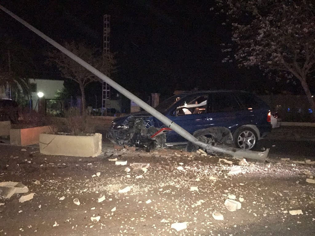 Sobre la medianoche del viernes, un vecino de Xàbia perdía el control del vehículo y colisionaba contra la mediana situada en la avenida de Trenc d’Alba provocando daños materiales en la farola y maceteros. El conductor se encontraba ileso a pesar del fuerte impacto.