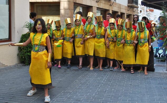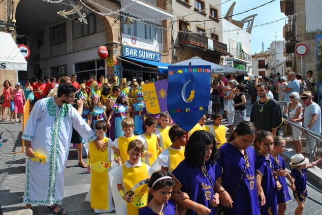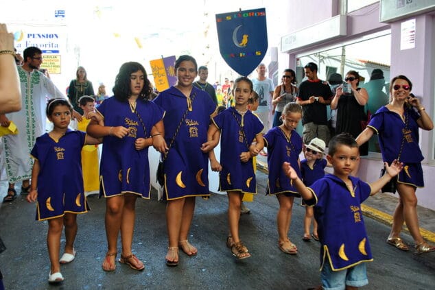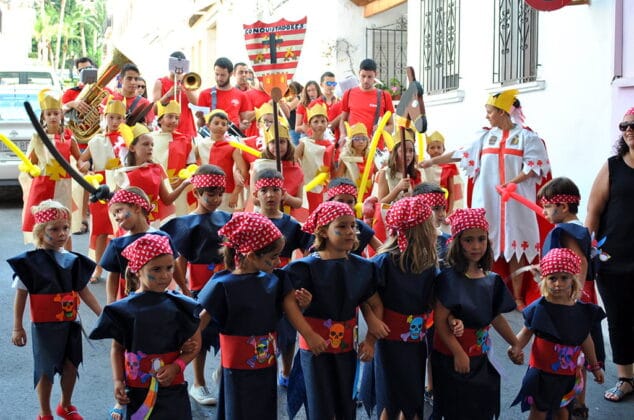Un desfile lleno de colorido en el que los miembros de las filaes han demostrado que llevan la fiesta de los Moros y Cristianos en la sangre y en el que, también, los integrantes de “Verano en Parroquia” han exhibido, junto a sus monitores, un gran derroche de imaginación al fundar sus propias comparsas para la cita anual y confeccionarse sus propios trajes de gala creando así escuadras piratas, de caballerías, tuaregs, arábicas y guerreras.