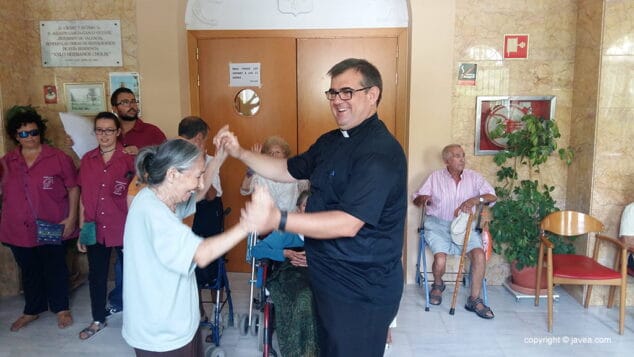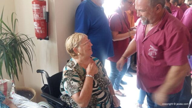 La música de la charanga XARANGATA Qui no mosega ARRAPA llenó de ambiente y alegría cada uno de los centros. Además, se les hizo entrega, a los residentes, de una medalla conmemorativa de la Virgen de Loreto con el lema Virgen de Loreto ruega por mí.