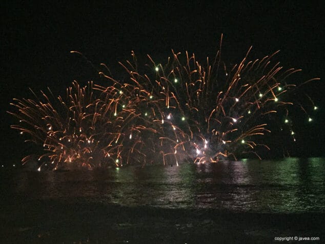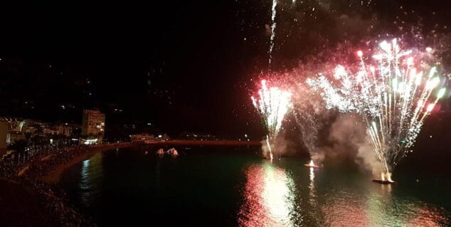 Y a la 1 de la madrugada, con puntualidad, se disparaba el castillo de fuegos artificiales acuático. Un magnífico espectáculo lanzado desde el mar que no dejó de sorprender a las miles de personas que llenaron el paseo de la Playa de la Grava.