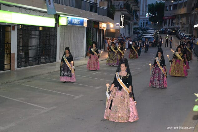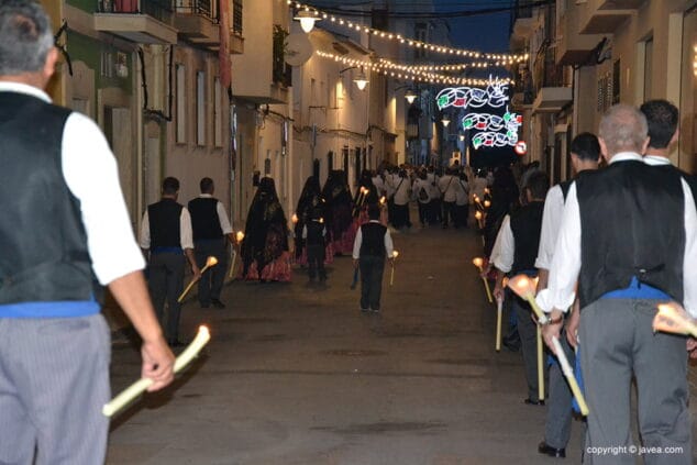 Por la tarde, los vecinos, asociaciones y comisiones festeras y los mayorales acompañaron a la Mare de Déu del Loreto en procesión por las calles de Duanes de la Mar. En esta ocasión, la Penya Les Marineres fueron las portadoras de la imagen.