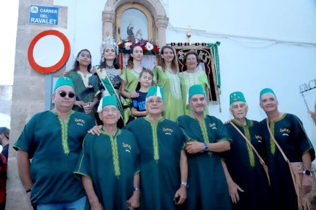 Junto a sus estandartes, las filaes xabieras han recorrido las calles Príncipe de Asturias, Placeta del Convent, Colón, Virgen de la Merced y Foguerer hasta la calle San Jaime (ahora del Ravalet) donde, desde hace años, la gran familia festera ofrenda a su patrón. Los encargados de hacerlo han sido las Abanderadas Mora y Cristiana, Indira Rosa Cardona y Natalia Moya y los Capitanes Almoriscos, Vicente Montaner y Merche Llidó; que han portado sus flores a lo largo del recorrido hasta depositarlas en la hornacina del santo.