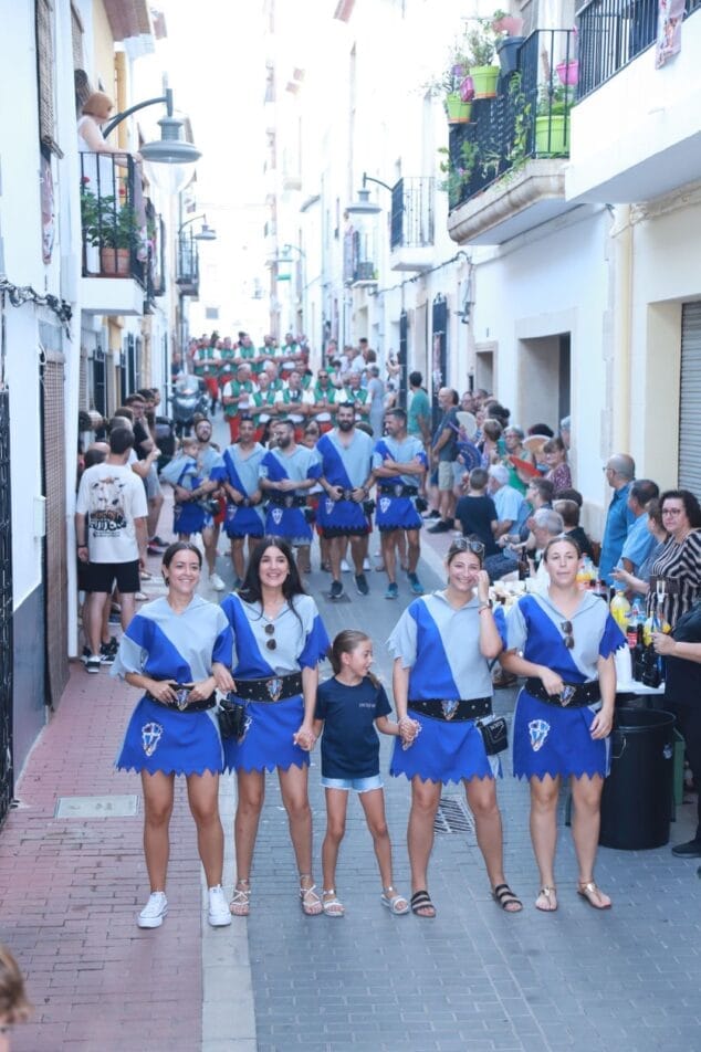 El presidente de la Junta de Festes, Abel Moll, la concejala de Fiestas, Mavi Pérez y la alcaldesa de Xàbia, Rosa Cardona, han acompañado a las filaes y los representantes de la fiesta durante su recorrido.