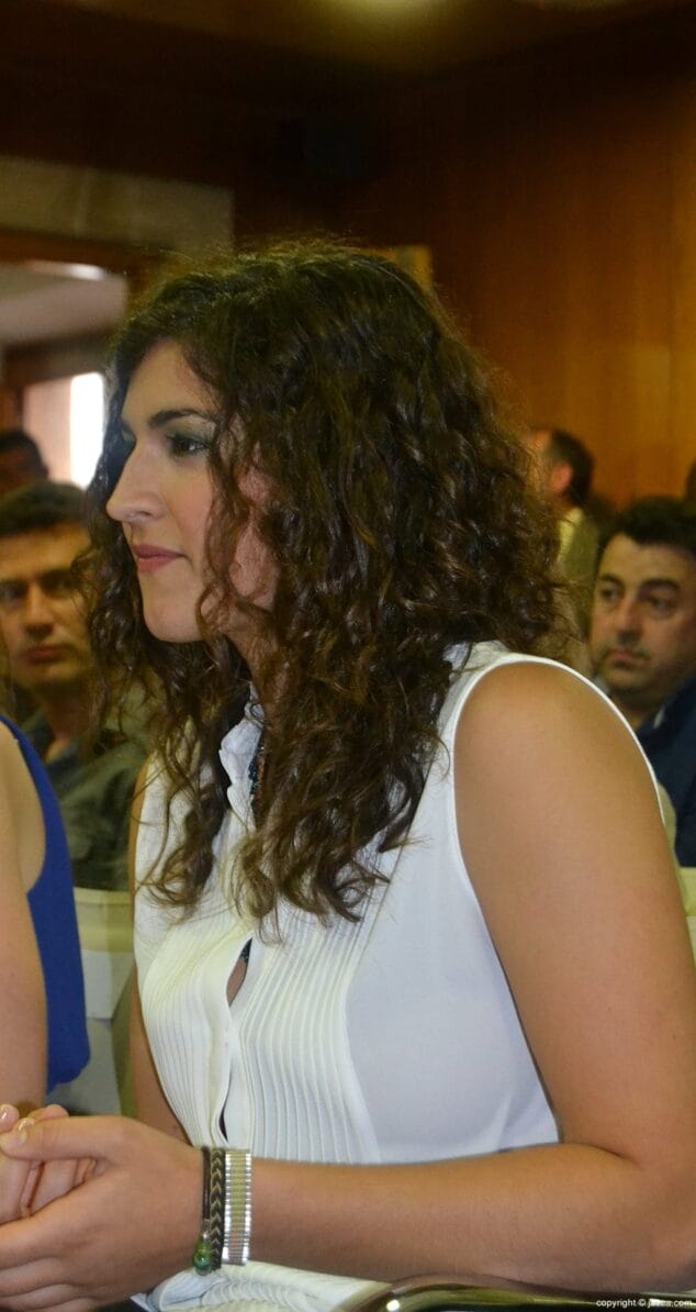 Lucía Gavilá presentando el acto de entrega de bandas de los cargos de Fogueres 2014 de Xàbia