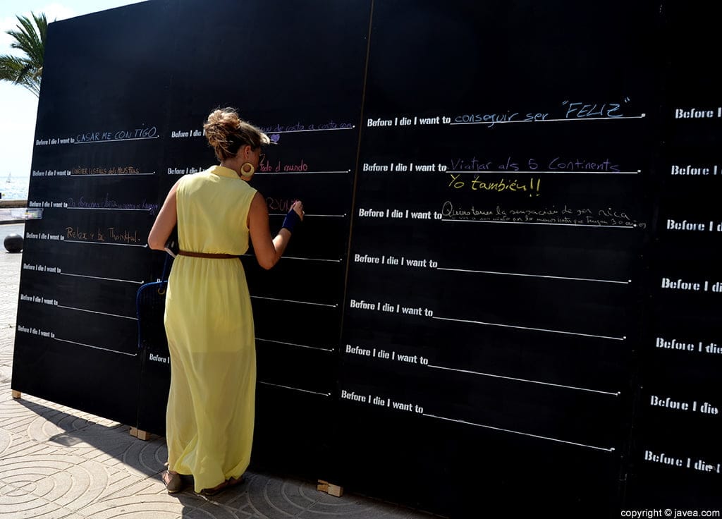 Los transeúntes se paraban a ver de qué trataba la iniciativa y no dudaban en participar escribiendo aquello que más desearían.