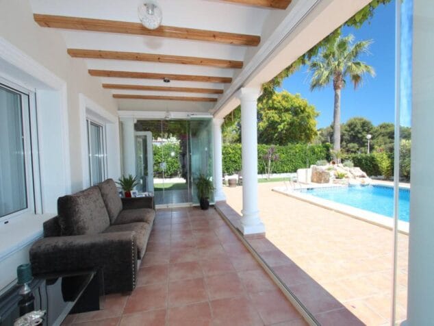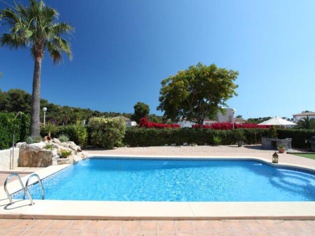 El exterior es ideal para disfrutar del buen clima de Jávea. En el jardín encontramos palmeras y más árboles mediterráneos, así como césped. Además, dispone de una piscina con terraza para tomar el sol.