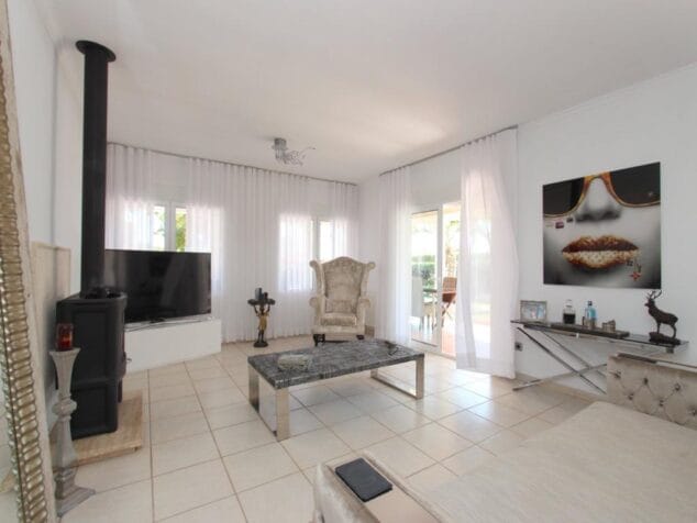 El chalet tiene una orientación sur y entre sus equipaciones, dispone de calefacción central, doble acristalamiento, estufa de leña y aire acondicionado.