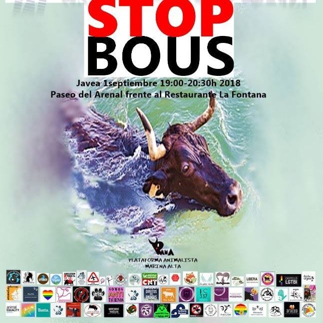 La Plataforma Animalista Marina Alta (PAMA), con el lema Ni bous a la mar, Ni bous al carrer, Festa Sense Animals ha organizado para el sábado 1 de septiembre de 19:00 a 20:30 horas, una manifestación antitaurina en la playa del Arenal de Xàbia, concretamente en el Paseo del Tenista David Ferrer, frente al Restaurante La Fontana, donde leerá un manifiesto.