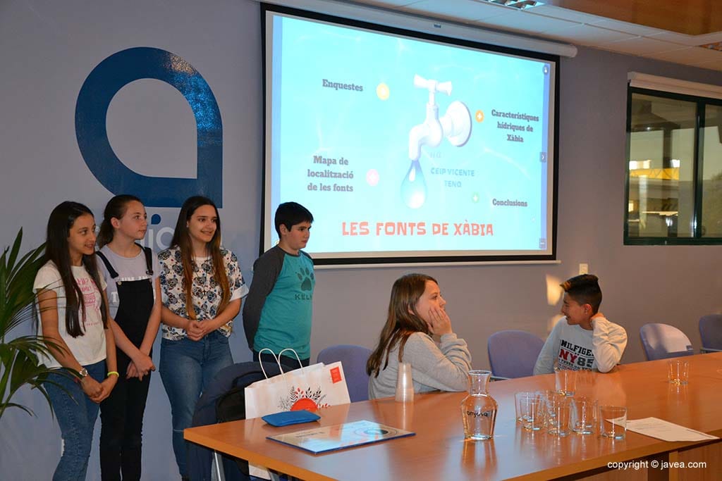 Alumnos del colegio Vicente Tena de Xàbia presentaron, ayer lunes, al alcalde de la localidad, concejales, técnicos y vecinos su proyecto de estudio y propuestas sobre las fuentes de agua en el municipio. El equipo de estudiantes expuso, en la sesión ordinaria del Observatorio del Agua, clara y brevemente cuáles eran las peticiones de la población xabiera a través del resultado obtenido en las más de 300 encuestas realizadas.