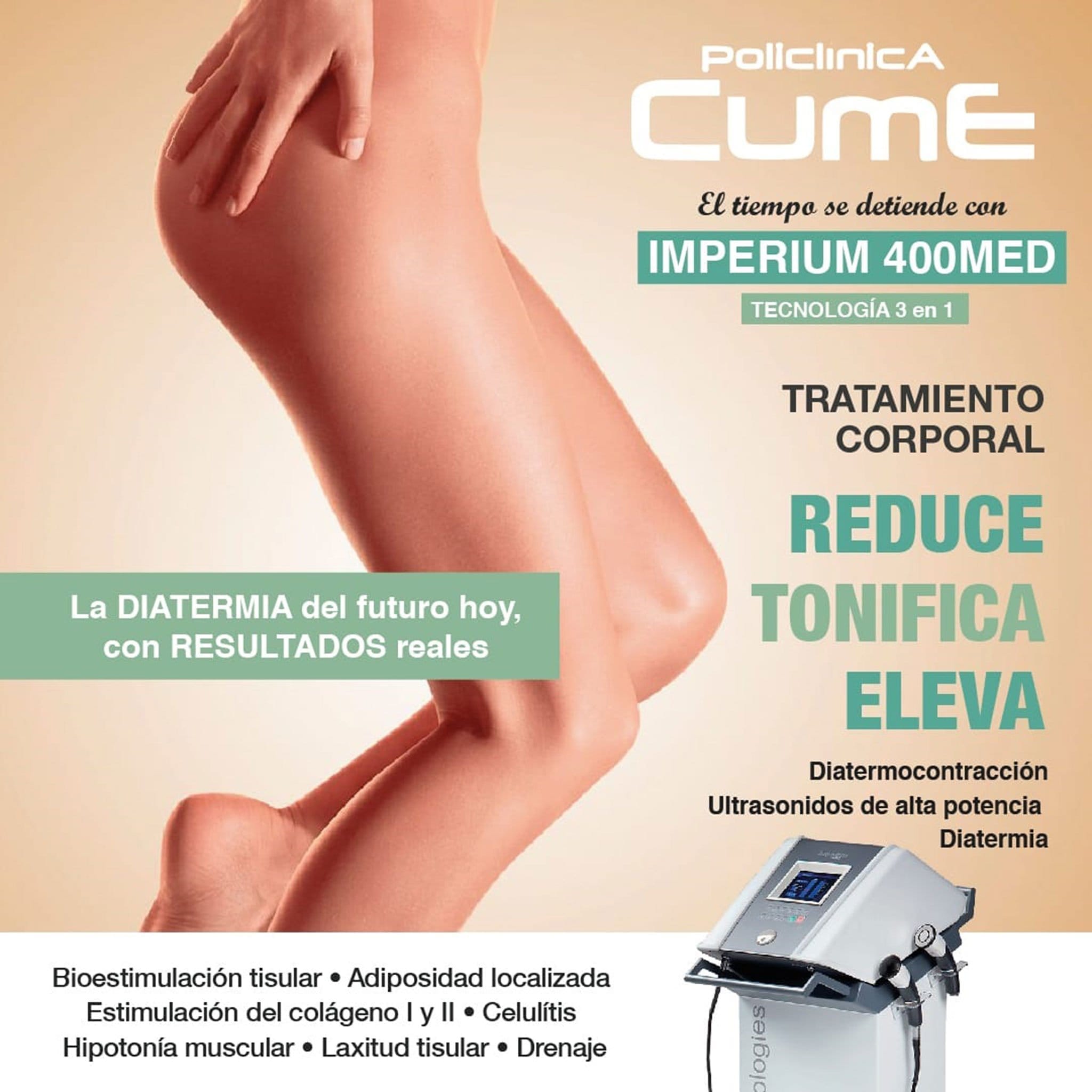 09 de junio de 2021 - 10:22La tecnología que detiene el tiempo. 1 de 3Foto SiguienteVer el artículo original: Mejora la celulitis con una oferta del tratamiento Imperium 400 en Policlínica CUME Imperium corporal en Jávea – Policlínica CUME Tratamiento Imperium 400 – Policlínica CUME Tratamiento Imperium 400 en Policlínica CUME