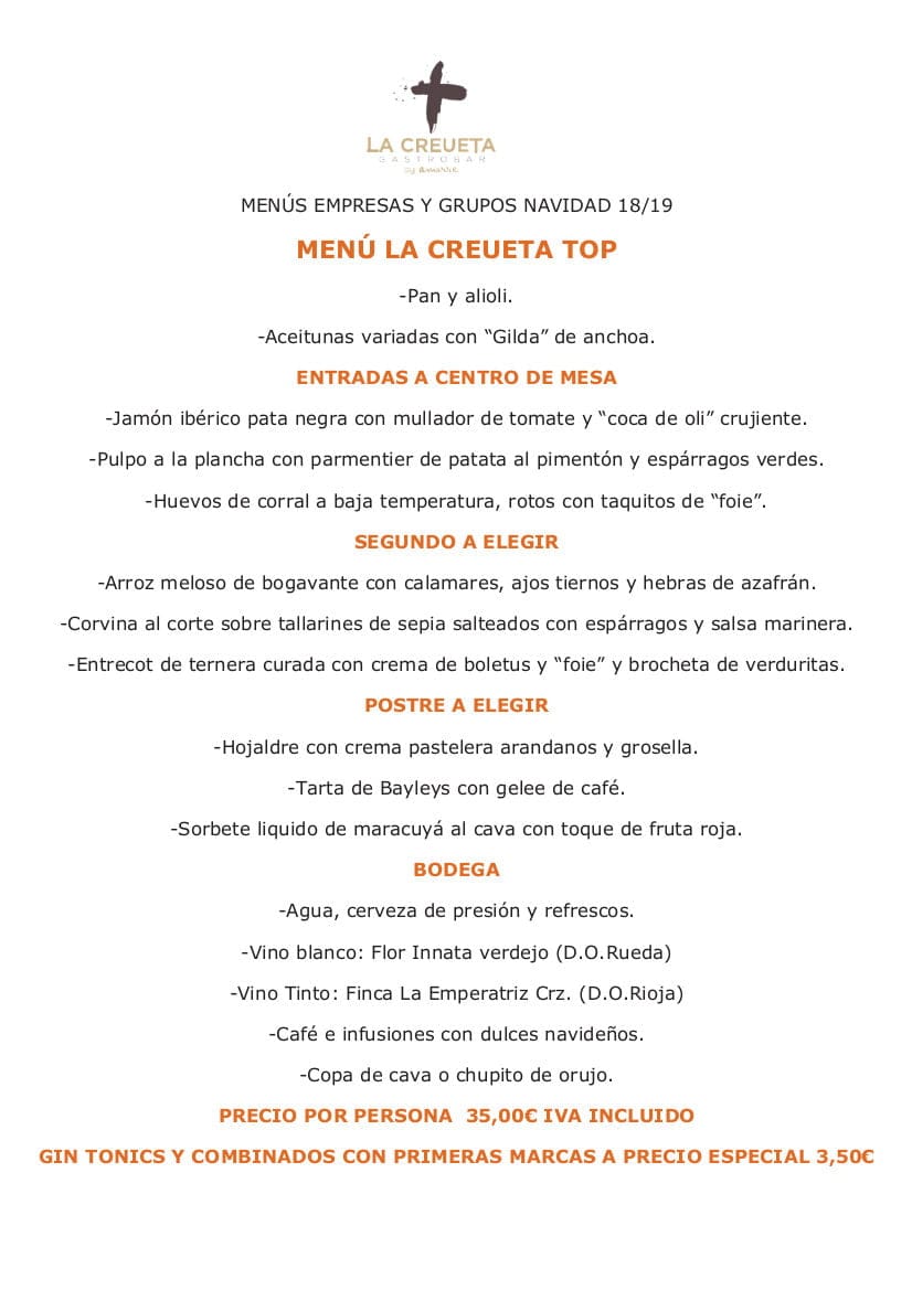 Esta Navidad disfruta el doble en tus encuentros navideños. No sólo te quedes con el buen sabor de estar con los tuyos sino también con el sabor de los platos que te ofrece Gastrobar La Creueta.