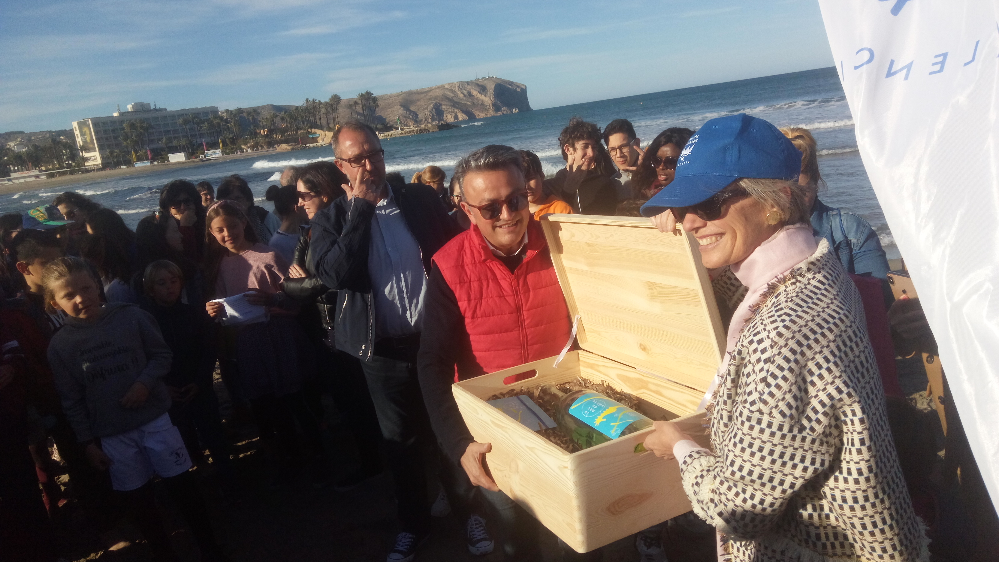 “Mensaje en una botella” es un proyecto pionero, que cuenta con el apoyo de la Fundación Biodiversidad del Ministerio para la Transición Ecológica, trata de sensibilizar acerca de la problemática actual que afecta al medio marino, con la participación de alumnos y alumnas de todos los centros escolares de Xàbia. La botella fue entregada a la representación escolar, al Consell dels Xiquets i Xiquetes de Xàbia para que viaje por los colegios, que estará una semana por centro, y se llene de buenos propósitos. La botella va acompañada de un cuaderno de bitácora para que el alumnado vaya registrando todas las vicisitudes, retos o recuerdos del viaje.