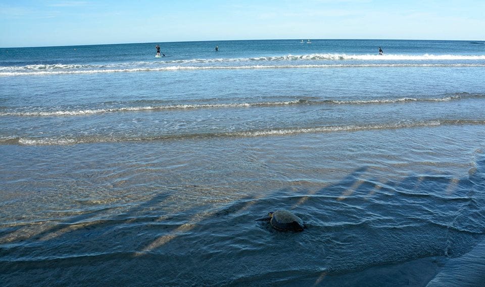 Como clausura del acto, al que asistieron el alcalde, José Chulvi, y la concejala de Educación, Montse Villaverde, además de un nutrido grupo padres con niños, se liberó una tortuga marina procedente del Área de Recuperación de animales marinos de la Fundación.