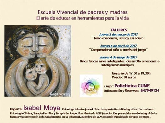En Policlínica CUME han preparado una serie de jornadas muy interesantes para padres y madres. ‘El arte para educar en herramientas para la vida’, es un proyecto de la la Escuela Vivencial para padres y madres que pretende ayudar con una tarea tan complicada como educar a nuestros hijos.