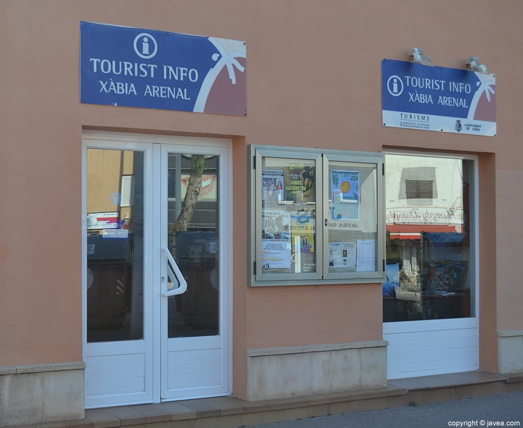 La oficina de turismo del arenal de Jávea se sitúa en la carretera del Cabo de la Nao en la Urbanización La Plaza.