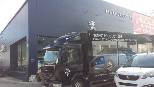 Camión mostrando el nuevo 208 por las calles de Benidorm y Finestrat - Peumóvil