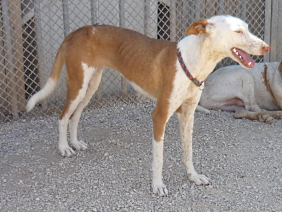 Platina es una hembra podenco de 8 años de edad que está en la Protectora de Animales San Antonio de Jávea desde 2011. Con sólo 1 año de vida llegó a la perrera. Platina tiene un carácter dulce y es muy cariñosa, se comporta bien con otros animales.
