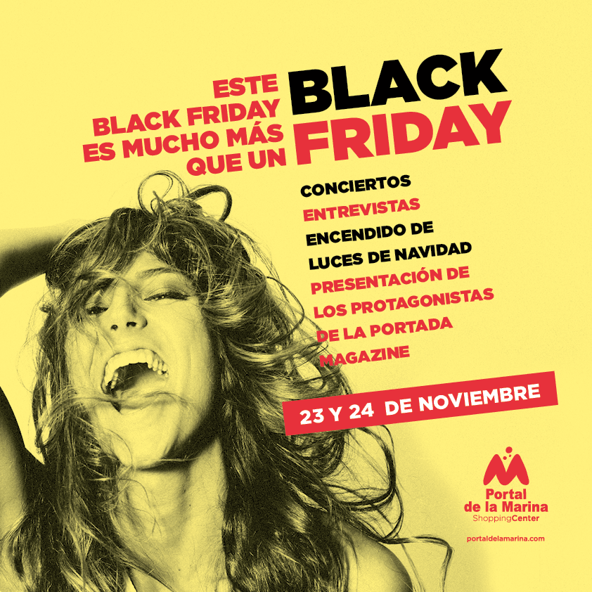 De esta manera, el Black Friday estará presente en Portal de la Marina los próximos 23 y 24 de noviembre donde además de los descuentos, las instalaciones se llenarán de invitados especiales. El horario de cierre del centro comercial se ampliará, el viernes, hasta las 23:00h de la noche.