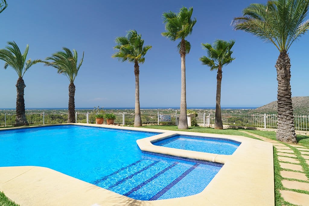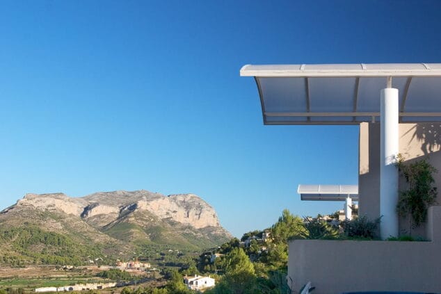 The penthouse of 90 m2 surface offers a luminous lounge and dining area with an American designer kitchen, separate laundry room and shower bath. The common areas and the 2 bedrooms, among them the master with en suite bathroom are connected with the 77 m2 terrace in front, which offers a 4-person hot tub and stunning 180 degree views of the sea, the La Sella golf club and the Montgó mountain reserve both of which contribute towards making the area green and beautiful. To the left, the imposing Segària mountain range is in full view.