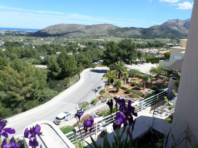 Die 90 m2 Wohnung bietet einen hellen Wohn-Essbereich in den sich die Designer Küche mit separatem Waschraum integriert und ein Duschbad. Der Wohnbereich und die 2 Schlafzimmer, darunter das Hauptschlafzimmer mit en-suite Bad gehen zur 77 m2 Terrasse mit Whirlpool. Von hier bietet sich ein herrlicher 180º Blick zum Mittelmeer, Golfplatz und Montgó Naturpark, die beide dazu beitragen, dass die Gegend besonders grün und attraktiv ist. Zur linken erstreckt sich majestätisch die Segâria Bergkette.