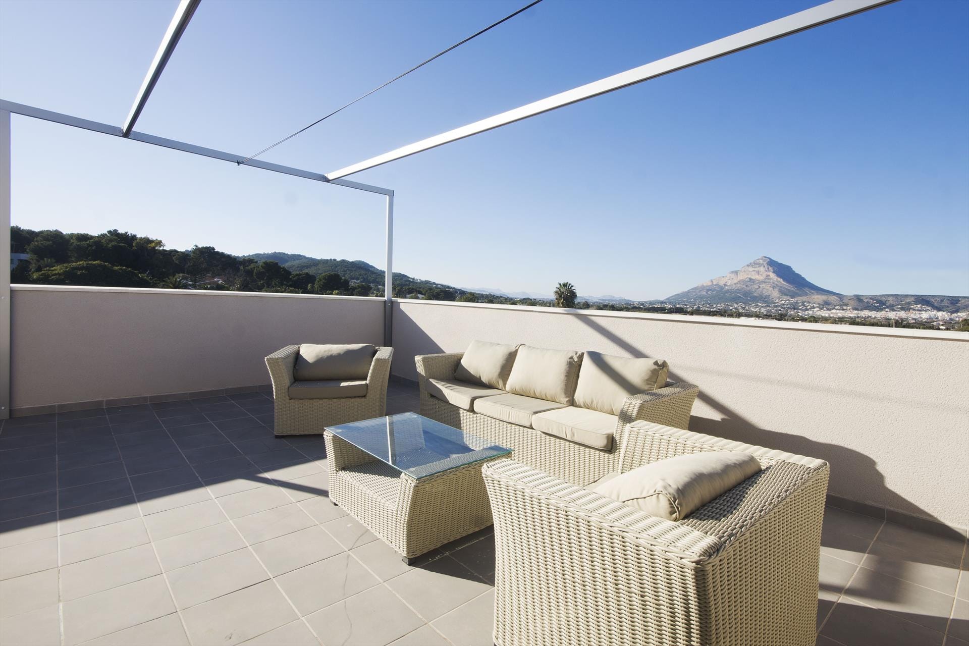 Gran terraza superior del Ático La Haya, con preciosas vistas al Montgó.