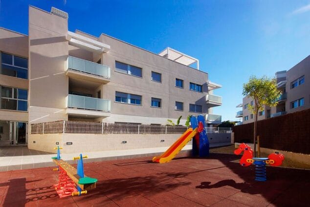 Además, en el complejo podrás disfrutar de piscina comunitaria con duchas exteriores, parque para niños, plaza de parking con garaje y ascensor.