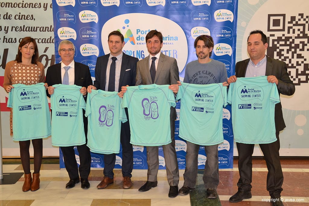 El presidente del Circuit a peu Marina Alta, junto a los patrocinadores en la presentación de la camiseta oficial.