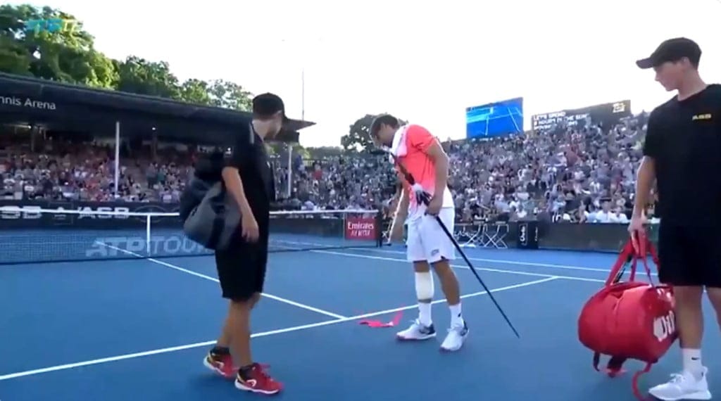 El jugador de Xàbia ha atravesado un emotivo pasillo en su camino a vestuarios, parte del gran homenaje que la organización ha realizado al tenista que más veces ha ganado en Auckland. Homenaje que se ha completado con la entrega de una lanza.